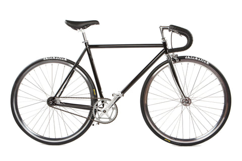 This is a demonstration store. You can purchase products like this from Pure Fix CyclesThe Pure Fix Premium Series is the perfect bike to take your riding to the next level. Featuring a double-butted 4130 chromoly frame, the Premium Series was bred to be lighter, stiffer, and faster. It comes street-ready with wrapped drop bars, our 700C, 30mm wheelset featuring sealed bearing hubs and a machined braking surface, and includes Thickslick 700x28c tires standard. The raked chrome fork and polished silver quill stem and seat help bring a dash of classic style to a bike that's guaranteed to turn heads, warm hearts, and haul ass.