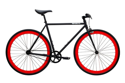 This is a demonstration store. You can purchase products like this from Pure Fix CyclesGloss Neon Red frame with white deep dish wheels.